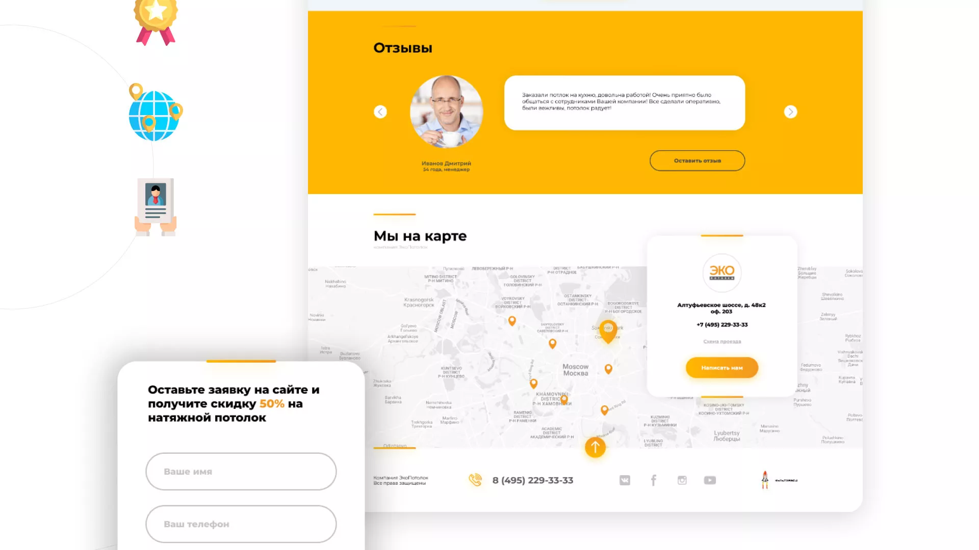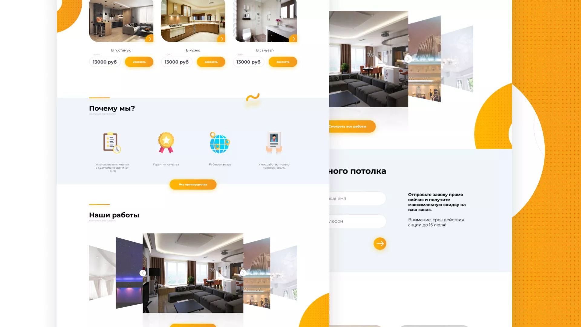 Вам нужна разработка сайта по натяжным потолкам в Топках? Специалисты компании «Мультзавод» готовы помочь! Мы предлагаем большой выбор уже готовых вариантов, а также можем создать и что-нибудь новое!